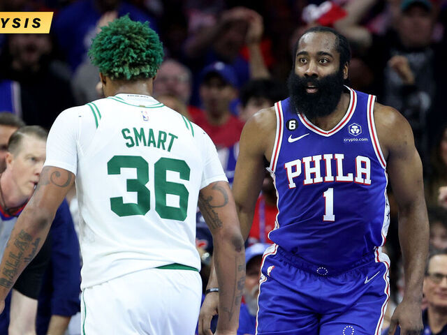El Juego 6 de Harden (13 puntos, 4 de 16 tiros de campo, nueve asistencias, cinco pérdidas de balón) fue su fiasco más ruidoso del grupo, no solo por la situación y lo que estaba en juego, sino por cómo estaba siendo defendido. Después de ser destrozados por el pick-and-roll de Harden-Embiid en el Juego 5, los Celtics modificaron su cobertura y se aseguraron de mantener al defensor de la pantalla pegado a Embiid en lugar de esperar para ayudar a Harden.