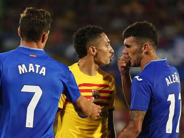 El lateral azulgrana Raphinha fue expulsado por un codazo en la primera parte y Jaime Mata del Getafe fue expulsado al inicio de la segunda por dos tarjetas amarillas.
