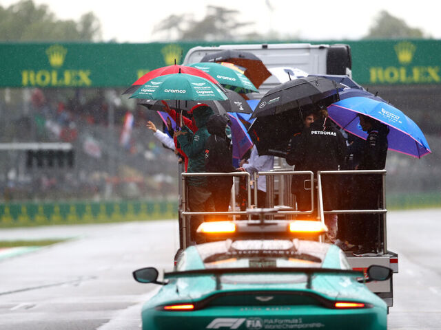 Después de las lluvias torrenciales, el estacionamiento y otras áreas del circuito Enzo y Dino Ferrari se inundaron y la sala de prensa fue evacuada, informó este martes la Gazzetta dello Sport.