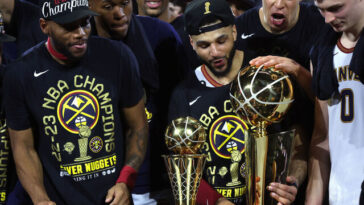 DENVER (AP) — Confeti volando en Denver. Los Nuggets comparten abrazos mientras se pasan el trofeo […] More